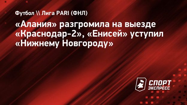 «Алания» разгромила на выезде «Краснодар-2», «Енисей» уступил «Нижнему Новгороду»