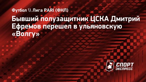 Бывший полузащитник ЦСКА Дмитрий Ефремов перешел в ульяновскую «Волгу» на правах свободного агента.