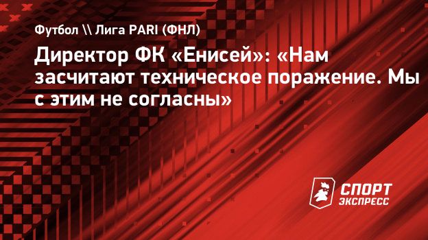 Директор ФК «Енисей»: «Нам засчитают техническое поражение. Мы с этим не согласны»