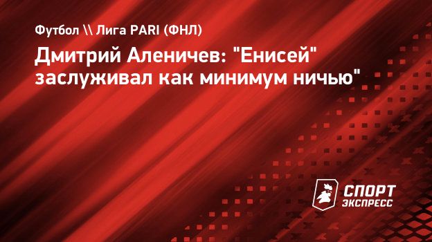 Дмитрий Аленичев: "Енисей" заслуживал как минимум ничью"