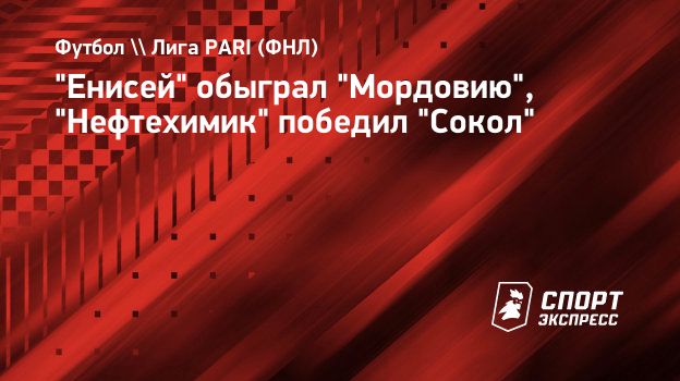 В матче 32-го тура первенства ФНЛ "Енисей" в гостях обыграл "Мордовию" со счетом 2:1. В другой встрече "Нефтехимик" победил "Сокол" – 2:1.