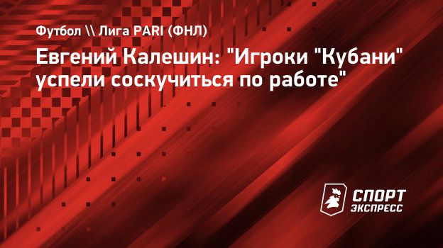 Евгений Калешин: "Игроки "Кубани" успели соскучиться по работе"