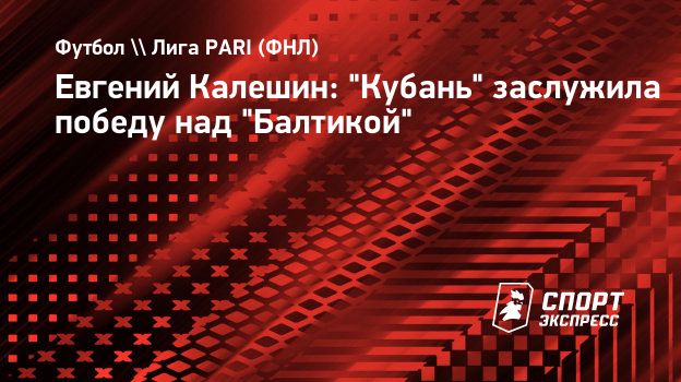 Старший тренер "Кубани" Евгений Калешин после матча 35-го тура ФНЛ против "Балтики" (1:0) отметил закономерность итогового результата. Ранее наставник клуба из Калининграда Игорь Черевченко заявил, что его команда уступила не по делу.