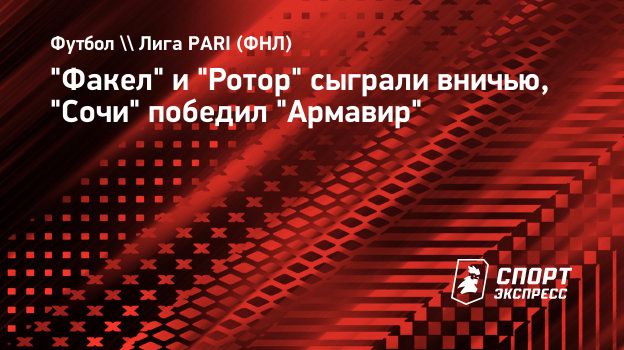 "Факел" и "Ротор" сыграли вничью, "Сочи" победил "Армавир"