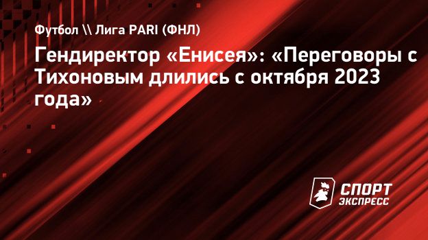 Гендиректор «Енисея»: «Переговоры с Тихоновым длились с октября 2023 года»