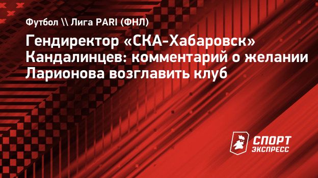 Генеральный директор «СКА-Хабаровск» Алексей Кандалинцев в разговоре с «СЭ» отреагировал на слова главного тренера хоккейного СКА Игоря Ларионова о желании возглавить футбольную команду.