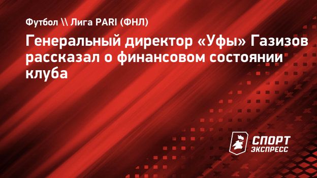 Генеральный директор «Уфы» Газизов рассказал о финансовом состоянии клуба