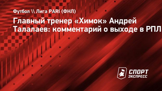 Главный тренер «Химок» Андрей Талалаев прокомментировал выход команды из первой лиги в РПЛ.