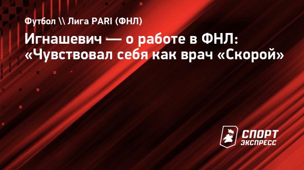 Игнашевич — о работе в ФНЛ: «Чувствовал себя как врач «Скорой»