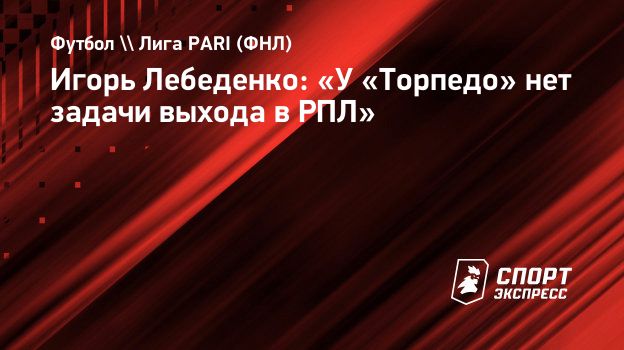 Игорь Лебеденко: «У «Торпедо» нет задачи выхода в РПЛ»