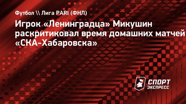 Игрок «Ленинградца» Микушин раскритиковал время домашних матчей «СКА-Хабаровска»