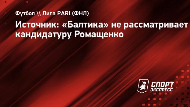 Источник: «Балтика» не рассматривает кандидатуру Ромащенко