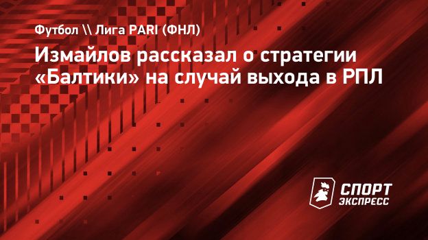 Измайлов рассказал о стратегии «Балтики» на случай выхода в РПЛ