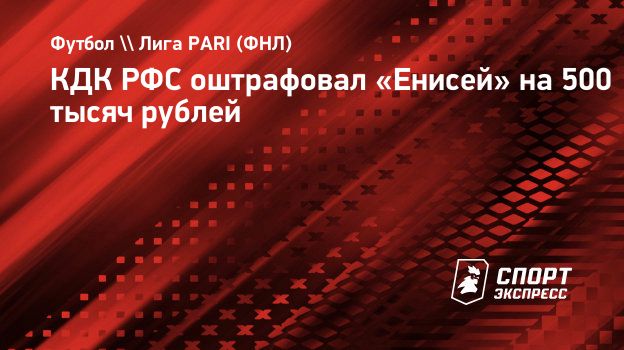 Председатель контрольно-дисциплинарного комитета Российского футбольного союза (КДК РФС) Артур Григорьянц заявил, что клуб чемпионата Олимп ФНЛ «Енисей» получил штраф в размере 500 тысяч рублей.