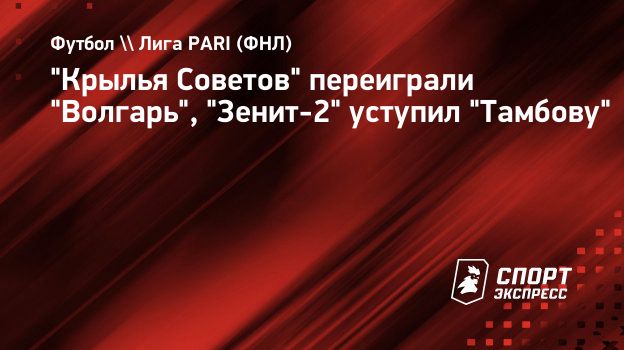 "Крылья Советов" переиграли "Волгарь", "Зенит-2" уступил "Тамбову"