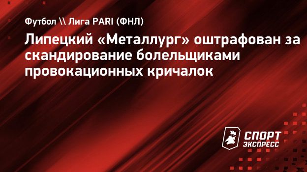 Контрольно-дисциплинарный комитет (КДК) Российского футбольного союза (РФС) оштрафовал липецкий «Металлург» на 50 тысяч рублей за скандирование зрителями нацистских кричалок на матче чемпионата Олимп — ФНЛ против «Томи», сообщает сайт РФС.
