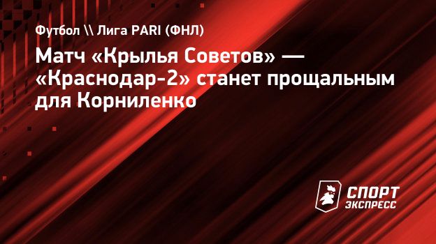 Матч «Крылья Советов» — «Краснодар-2» станет прощальным для Корниленко
