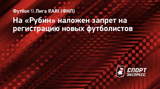 Палата Российского футбольного союза (РФС) по разрешению споров наложила на казанский «Рубин» запрет на регистрацию новых игроков из-за финансовых задолженностей по договорам о посреднических услугах, сообщает пресс-служба организации.