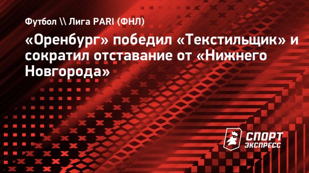 «Оренбург» обыграл «Текстильщик» в 24-м туре Олимп-ФНЛ — 2:0. Это позволило оренбуржцам вернуться на второе место в таблице и сократить отставание от лидирующего «Нижнего Новгорода» до 7 очков.
