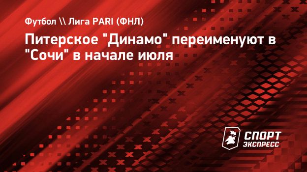 Питерское "Динамо" переименуют в "Сочи" в начале июля