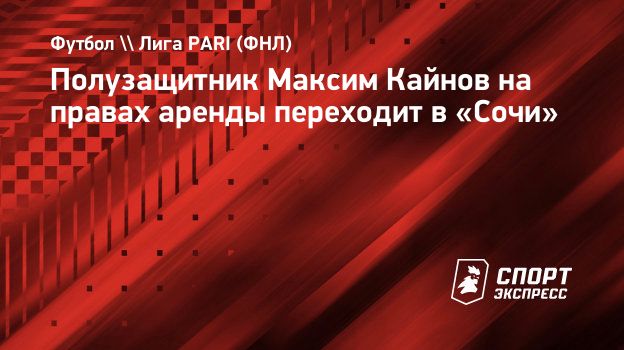 Полузащитник Максим Кайнов на правах аренды переходит в «Сочи»
