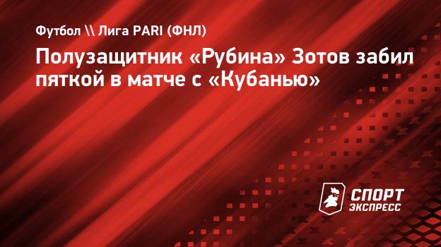 Полузащитник «Рубина» Александр Зотов стал автором гола в матче 5-го тура первой лиги против «Кубани». Он увеличил преимущество казанцев — 2:0.