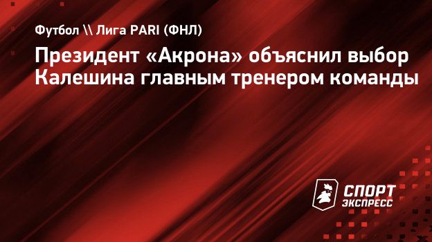 Президент «Акрона» объяснил выбор Калешина главным тренером команды