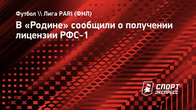 «ФК «Родина» получил лицензию РФС-1», — сказали «СЭ» в пресс-службе клуба.