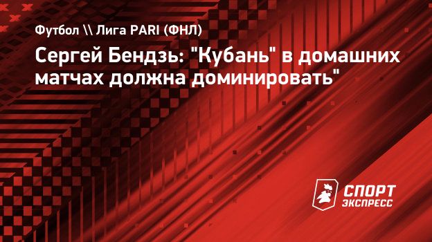 Сергей Бендзь: "Кубань" в домашних матчах должна доминировать"