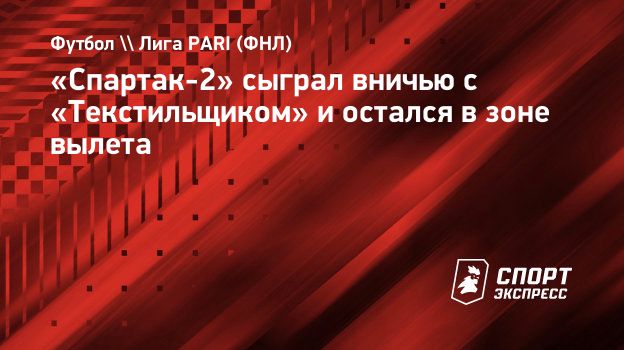 «Спартак-2» сыграл вничью с «Текстильщиком» в матче 26-го тура Олимп-ФНЛ — 1:1. Красно-белые и клуб из Иваново остались в зоне вылета.