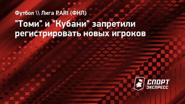 РФС запретил "Томи" и "Кубани" регистрировать новых игроков, информирует официальный сайт организации. Запрет наложен в качестве обеспечительной меры за долги по зарплате.