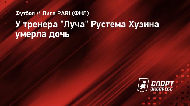 -Коллектив Футбольной Национальной Лиги выражает свои глубочайшие соболезнования главному тренеру футбольного клуба "Луч" Рустему Хузину в связи с уходом из жизни дочери Розаны. Рустем Агзамович, скорбим вместе с вами и вашей семьей об этой невосполнимой утрате, - говорится в сообщении пресс-службы лиги.