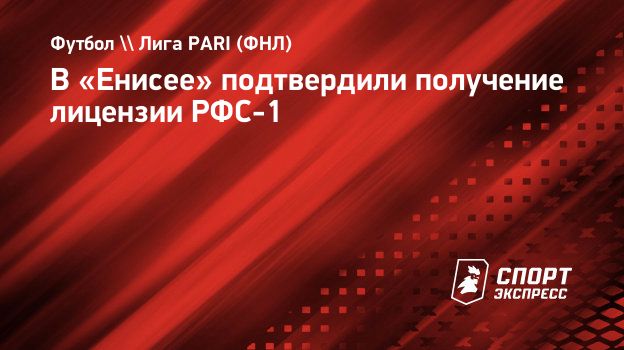 Главный тренер «Енисея» Алексей Ивахов в комментарии для «СЭ» подтвердил информацию о получении лицензии РФС-1, которая позволяет клубу участвовать в стыковых матчах и РПЛ. Ранее об этом сообщил Metaratings.ru.