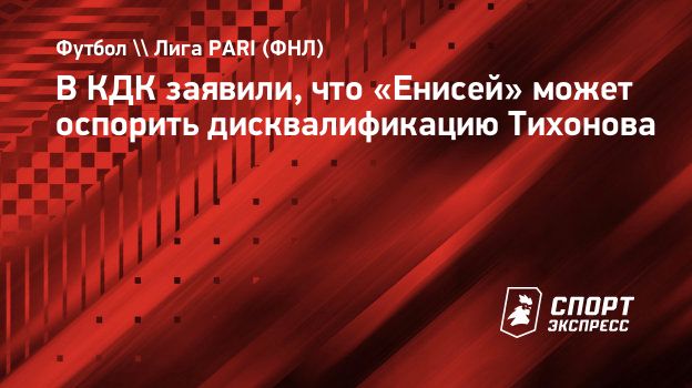 В КДК заявили, что «Енисей» может оспорить дисквалификацию Тихонова
