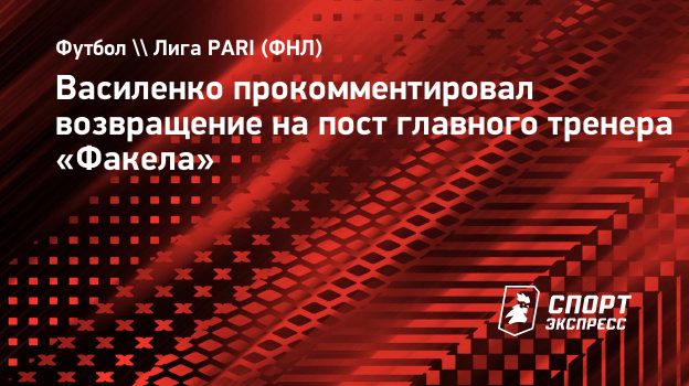 Василенко — о возвращении на пост главного тренера «Факела»: «Цель понятна, клуб должен играть в РПЛ»