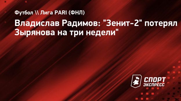 Владислав Радимов: "Зенит-2" потерял Зырянова на три недели"