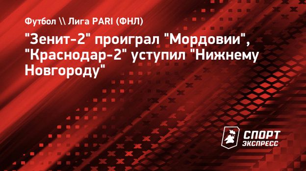 "Зенит-2" проиграл "Мордовии", "Краснодар-2" уступил "Нижнему Новгороду"