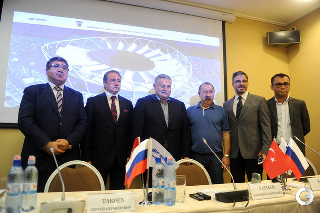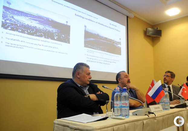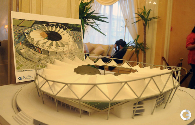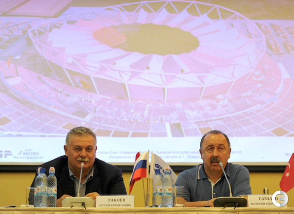 Во Владикавказе состоялась презентация нового стадиона, который в скором будущем должен украсить город. Председатель правительства республики Сергей Такоев, президент "Алании" Валерий Газзаев, а также главный архитектор проекта Мурад Кадэр рассказали, какой будет эта супер-арена. Вместимость нового стадиона 32 тысячи. На его территории разместится футбольная академия, в распоряжении которой будут семь полей и трехтысячная трибуна. По предварительным подсчетам, строительство стадиона должно обойтись в 186 млн евро, что соответствует стандартам ФИФА, который предусматривает затраты в шесть тысяч евро на человека. Фото - Никита Успенский, "СЭ"