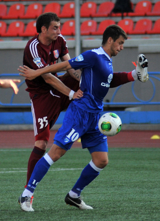 Футбол. Первенство России. ФНЛ. 3-й тур. "Сибирь" (Новосибирск) – "Мордовия" (Саранск) – 4:2 (2:2). Голы: Хубутия, 9 (0:1). Выходил, 29 (1:1). Иванов, 35 (1:2). Рыжков, 37 (2:2). Выходил, 62 (3:2). Маркосов, 84 (4:2). Удаление: Божович (М), 45. Фото - Алексей ИГНАТОВИЧ