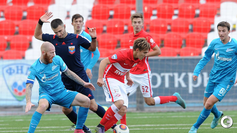 "Зенит-2" в матче 17-го тура первенства ФНЛ на выезде обыграл "Спартак-2" со счетом 2:1. На поединке присутствовал тренерский штаб первой команды красно-белых во главе с Дмитрием Аленичевым, а также владелец клуба Леонид Федун. "Спартак-2" с 28 очками продолжает идти на шестом месте в турнирной таблице. "Зенит-2" набрал 21 очко и поднялся с 16-й строчки на 13-ю. Фото Алексей ИВАНОВ, "СЭ"