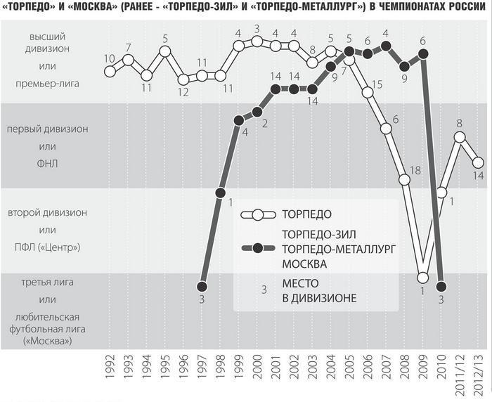 Шлейф склок и скандалов тянется за "Торпедо" последние лет пятнадцать. Помните громкий развод с ЗИЛом и переход под крыло "Лужников", что повлекло за собой настоящее почкование? "Торпедо", "Торпедо-ЗИЛ", "Торпедо-РГ", бесконечные споры о том, какое из них "настоящее"… Почему-то вся эта возня ассоциировалась у меня с дележом территории страны липовыми детьми лейтенанта Шмидта в "Золотом теленке".