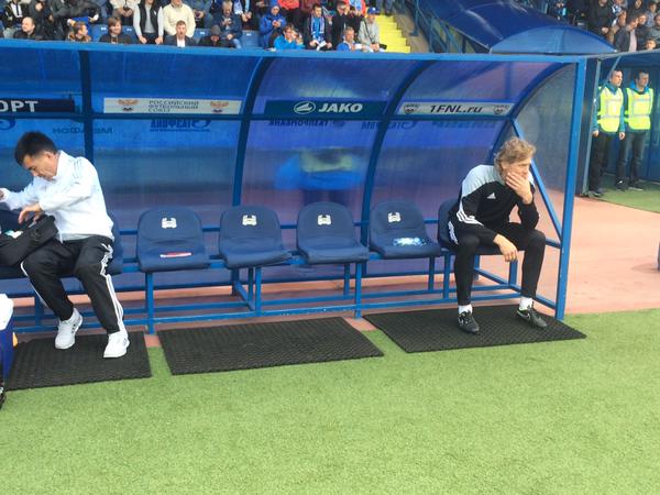 После рукопожатия с Владиславом Радимовым Карпин приземлился на тренерскую скамейку. На соседних креслах сидела пустота: в команде, цитирую Валерия Георгиевича, пока нет ни тренера по физподготовке, ни тренера вратарей, ни тренера-аналитика. В середине первого тайма в руках у Карпина появилась бумажка, где он фиксировал замены. Хотя поначалу показалось, что он сверяет номера игроков с именами и фамилиями, поскольку не всех еще знает в лицо.