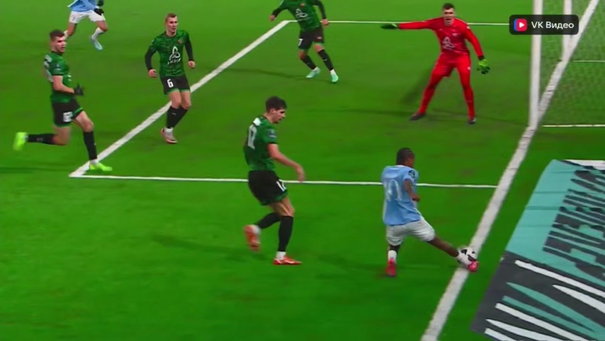 Скандальный эпизод произошел на 90+3-й минуте — нападающий «Родины» Йорди Рейна с фланга навесил на Артема Максименко. Форвард воспользовался шансом и забил головой — счет должен был стать 2:1.