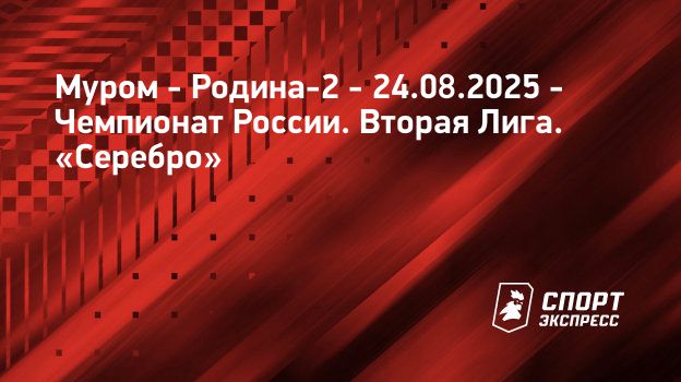 "СЭ" рад приветствовать всех любителей футбола! Здесь вас ждет онлайн-трансляция матча Муром (Муром) – Родина-2 (Москва). Чемпионат России. Вторая Лига. «Серебро», 6-й тур Матч пройдет 24 августа 2025 года на стадионе им. Виктора Лосева (Муром, Россия). Начало - в 17:00 по московскому времени.