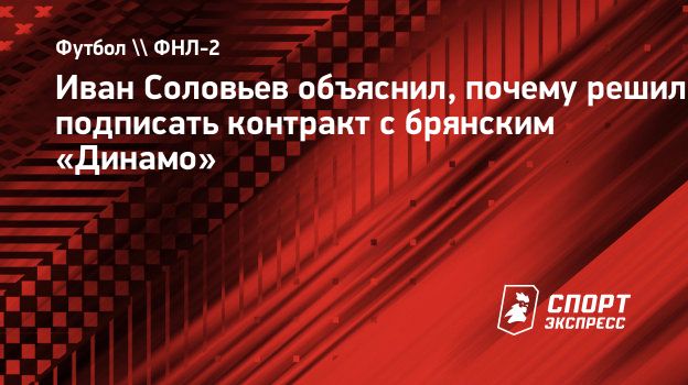 Бывший полузащитник московского «Динамо» и «Зенита» Иван Соловьев в интервью «СЭ» объяснил, почему решил подписать контракт с брянским «Динамо». Последние семь лет он выступал за клубы Узбекистана и Киргизии.