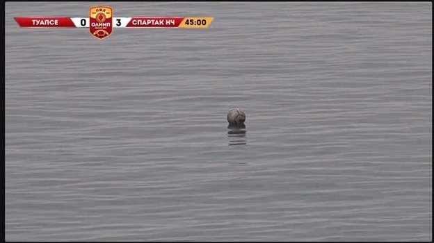 Мяч попал в море. Во время трансляции ближе к окончанию первого тайма было видно, что он уплыл. Стадион «МБУ школы №6» находится рядом с морем.