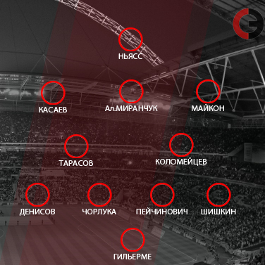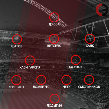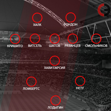 На исходе получаса матча Андре Виллаш-Боаш выполнил двойную замену, и его команда перешла на схему 4-4-2. Хотя в моменты атак расстановка принимала даже вид 3-5-2. Нету и Ломбертс страховали тылы, к ним в помощь опускался Хави Гарсия, крайние защитники становились атакующими хавбеками, Шатов сновал по всему периметру поля, играя свободного художника, а Халк и вышедший Рондон действовали в роли чистых нападающих.