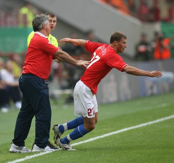 Голы: Сычев, 21 (1:0). Павлюченко, 34 (2:0). Кшинувек, 73 (2:1). Блащиковски, 77 (2:2). |
