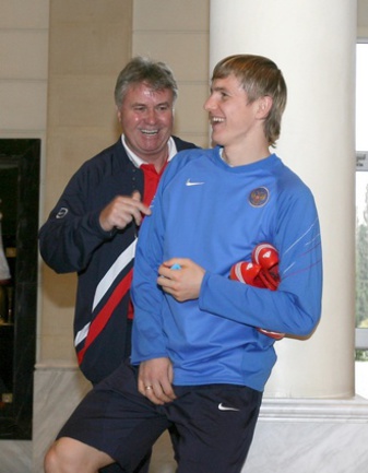 Главный тренер сборной России Гус Хиддинк и нападающий "Спартака" Роман