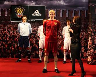 Российский футбольный союз и компания Adidas сегодня в демонстрационном зале ГУМа официально представили новую игровую форму сборной России. В презентации приняли участие игроки национальной команды Роман Павлюченко, Сергей Семак, Алан Дзагоев, Владимир Габулов и Иван Саенко, тренерский штаб сборной в составе Гуса Хиддинка, Александра Бородюка и Игоря Корнеева, генеральный директор РФС Алексей Сорокин, а также представители компании Adidas Group. |
